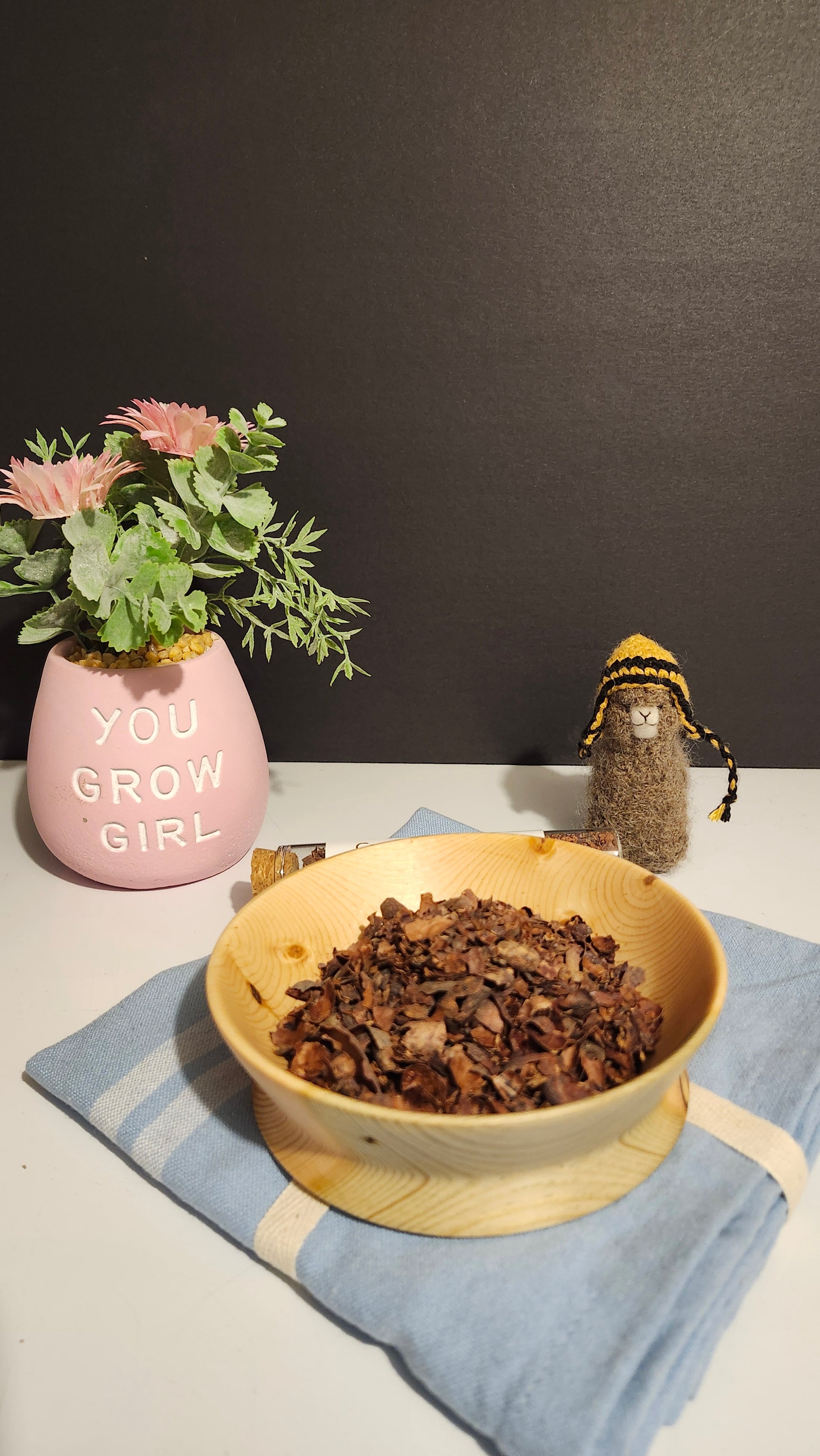 *One or two tea spoon of cacao husk tea steeped for 5 minutes