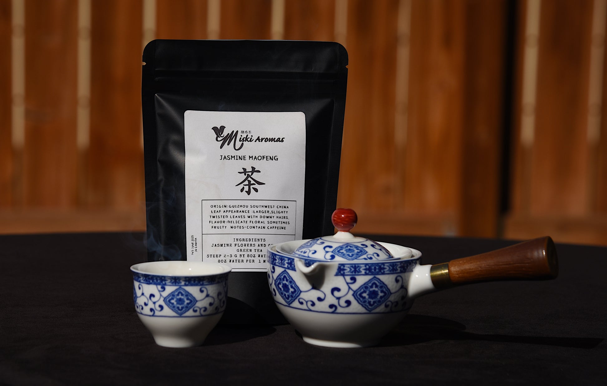 Jasmine Flowers and Guizhou Green Tea leaves.